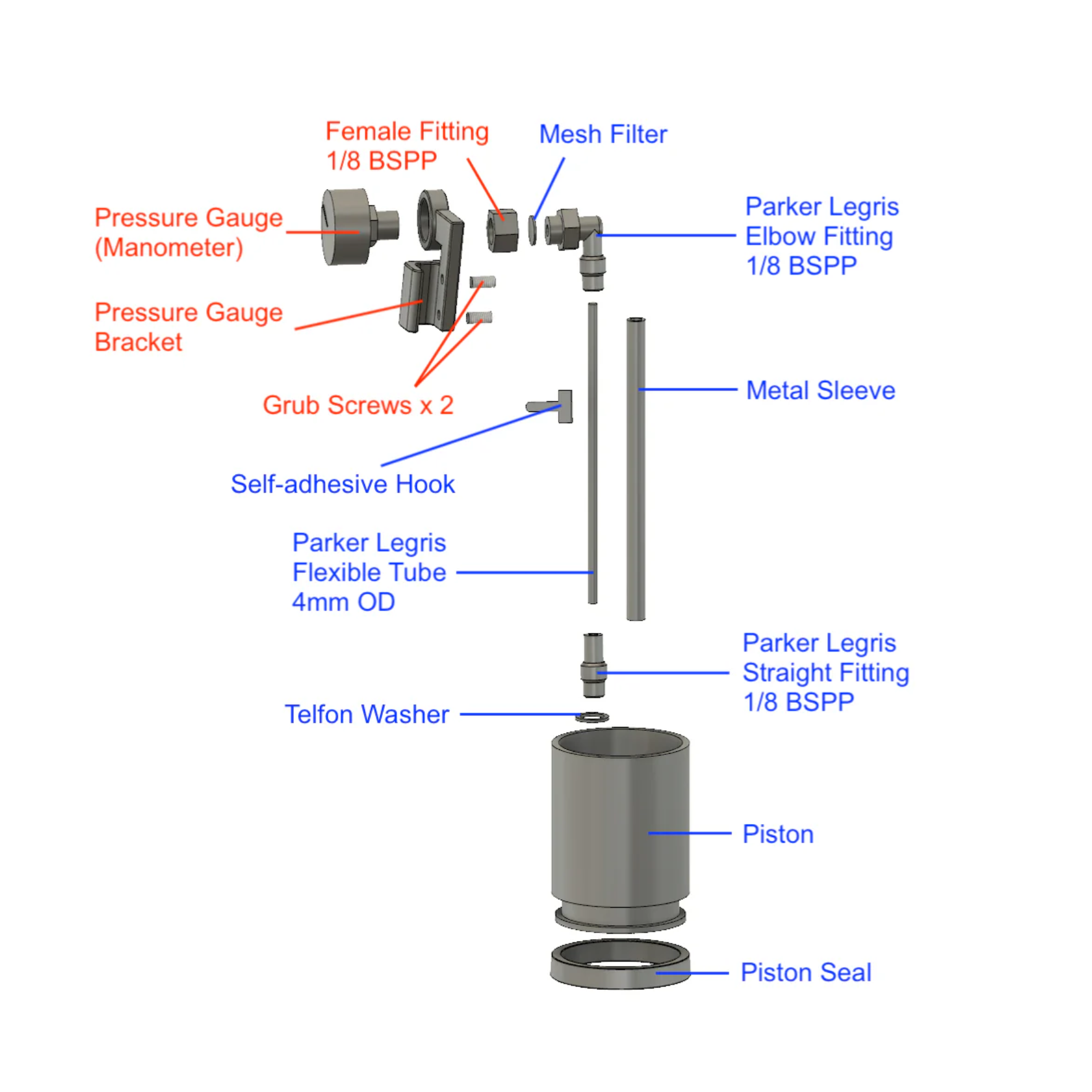 - 1 × Female Parker Legris fitting (pre-installed and threadlocked)