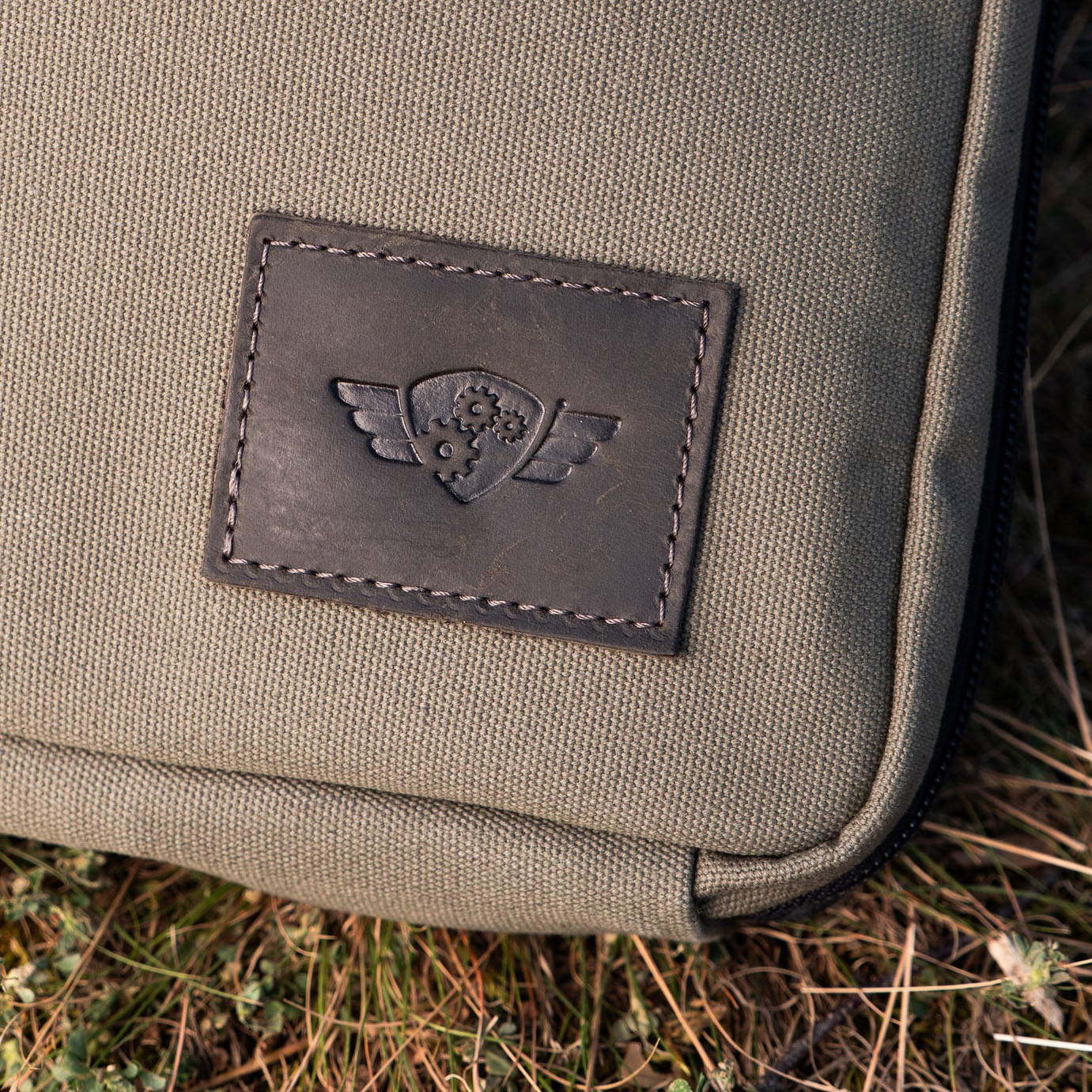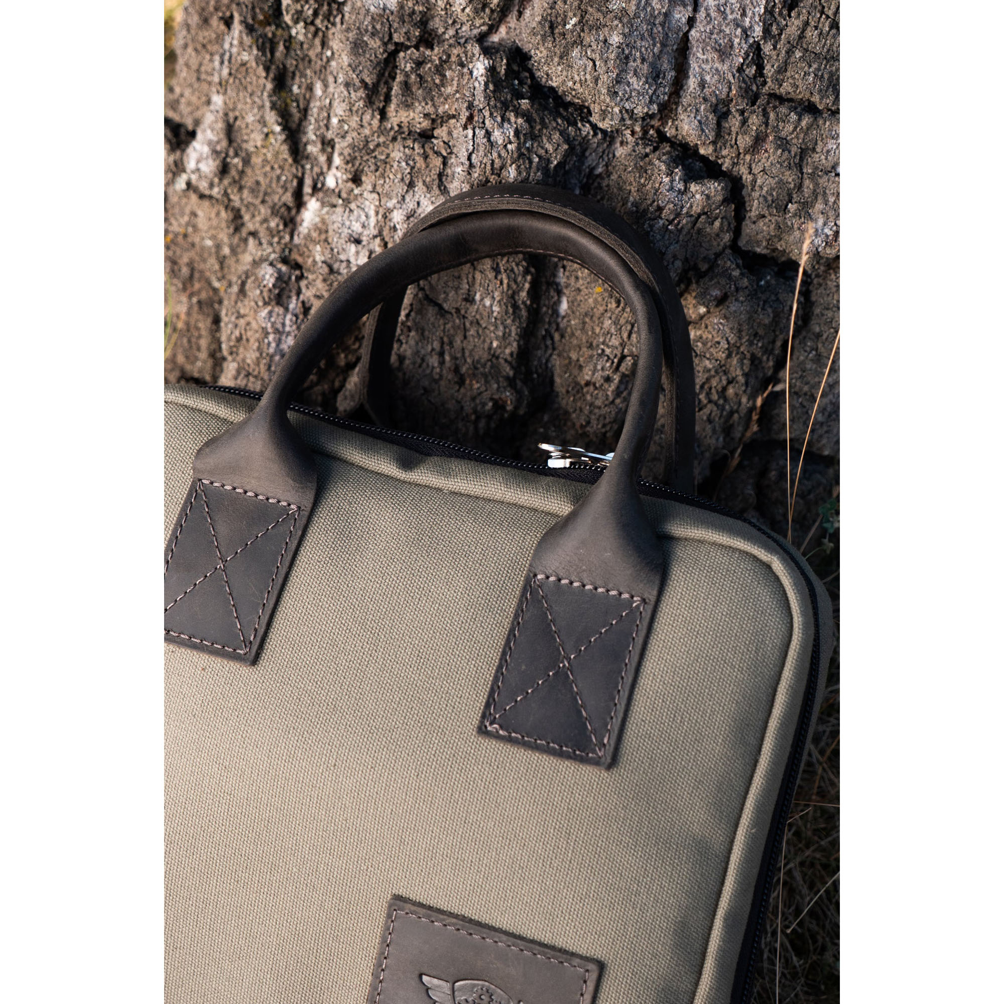 - Materials: Cotton canvas (padded), Italian leather straps, YKK zipper