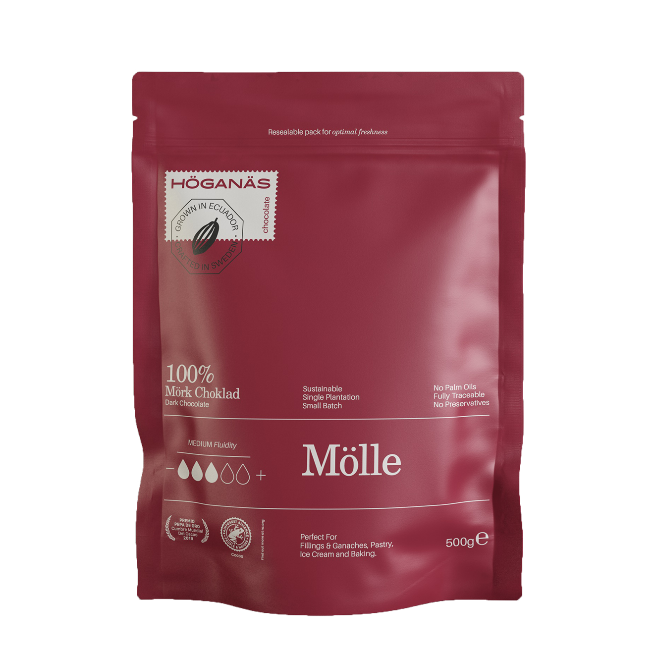 Höganäs is a Swedish chocolate producer, with roots in Ecuador. All of their cocoa beans come from their 100-year-old family farm in Ecuador, where their families have harvested cocoa for generations.