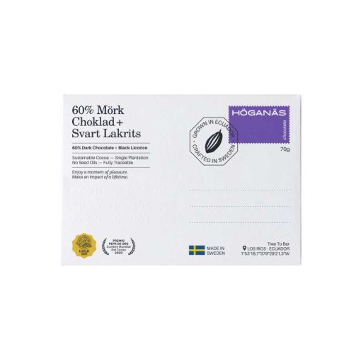 Höganäs is a Swedish chocolate producer, with roots in Ecuador. All of their cocoa beans come from their 100-year-old family farm in Ecuador, where their families have harvested cocoa for generations.