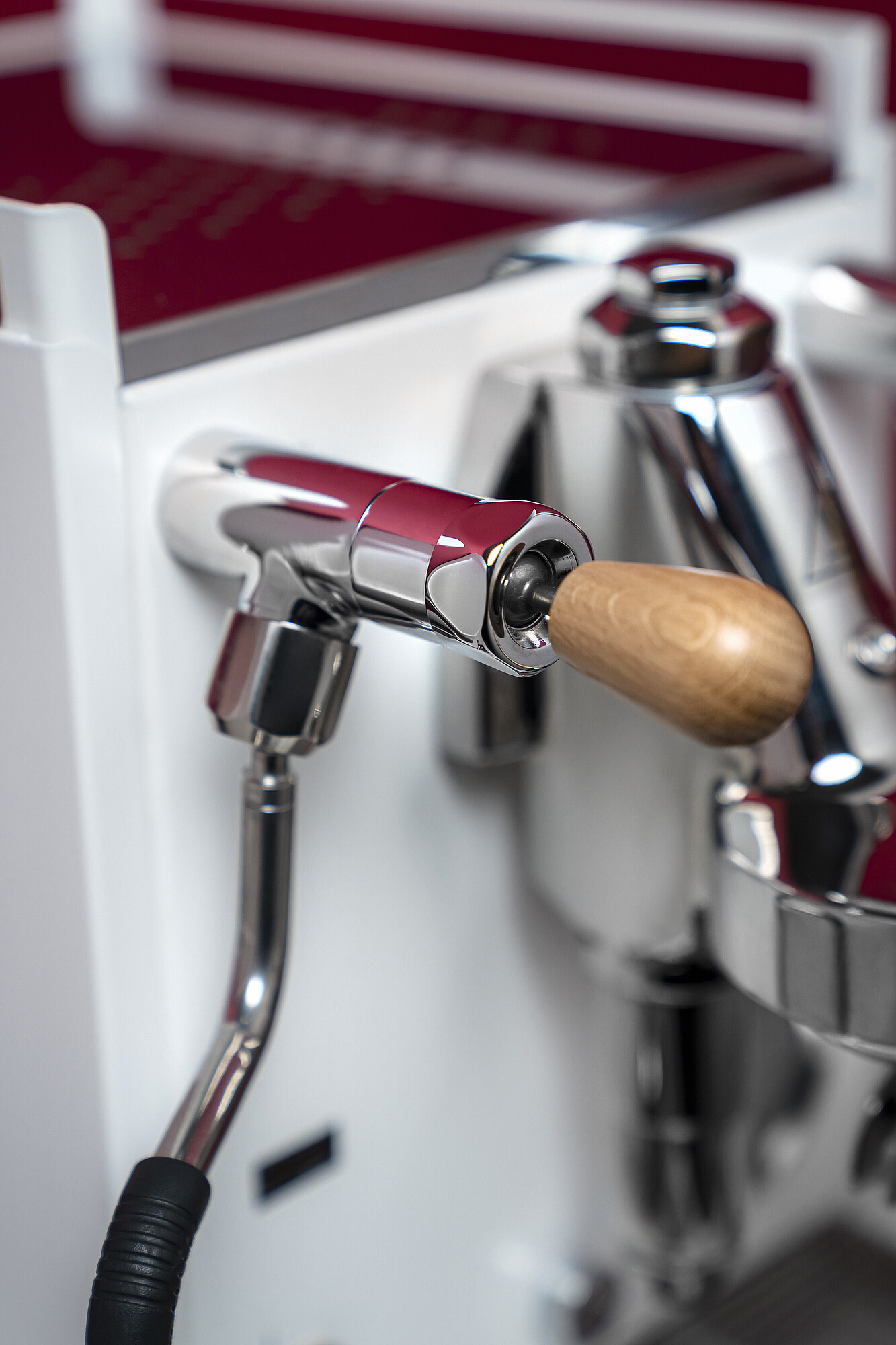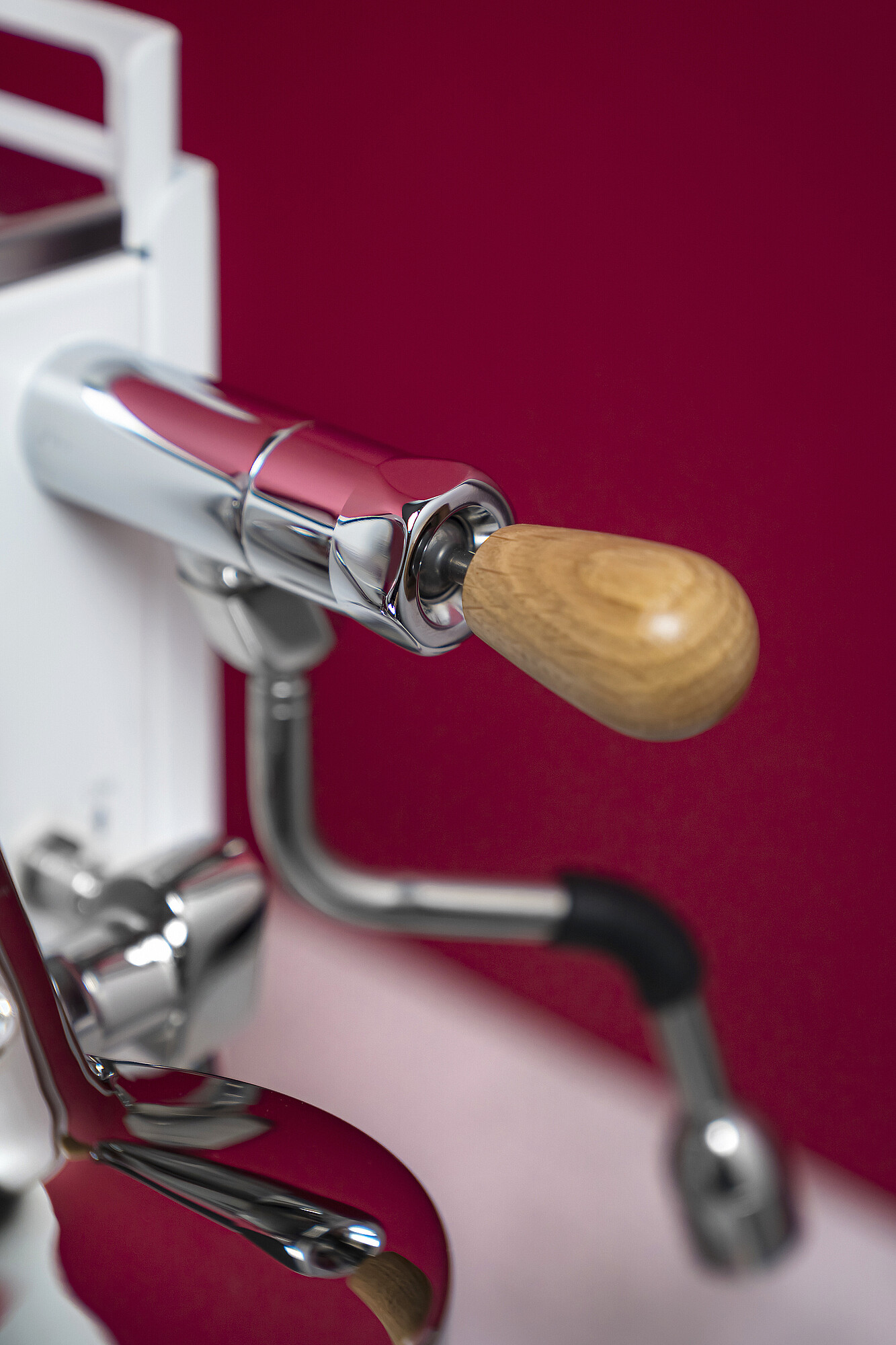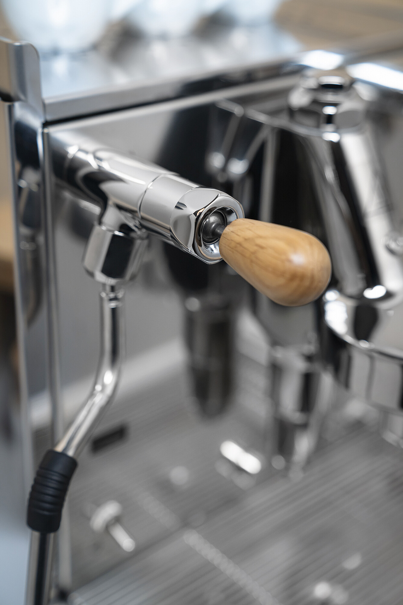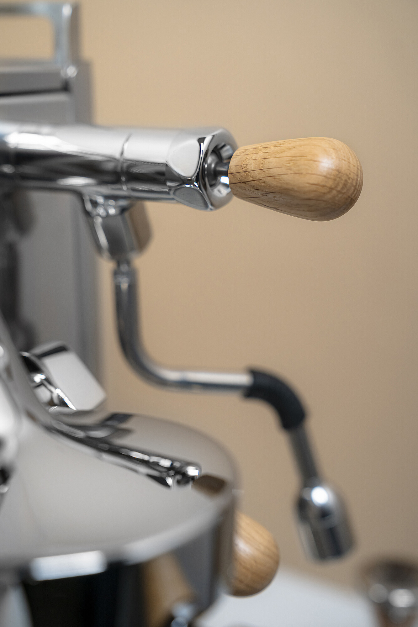• Design Details: Features shortened hot water and steam taps, wooden levers, and a convenient accessories drawer for storing filters