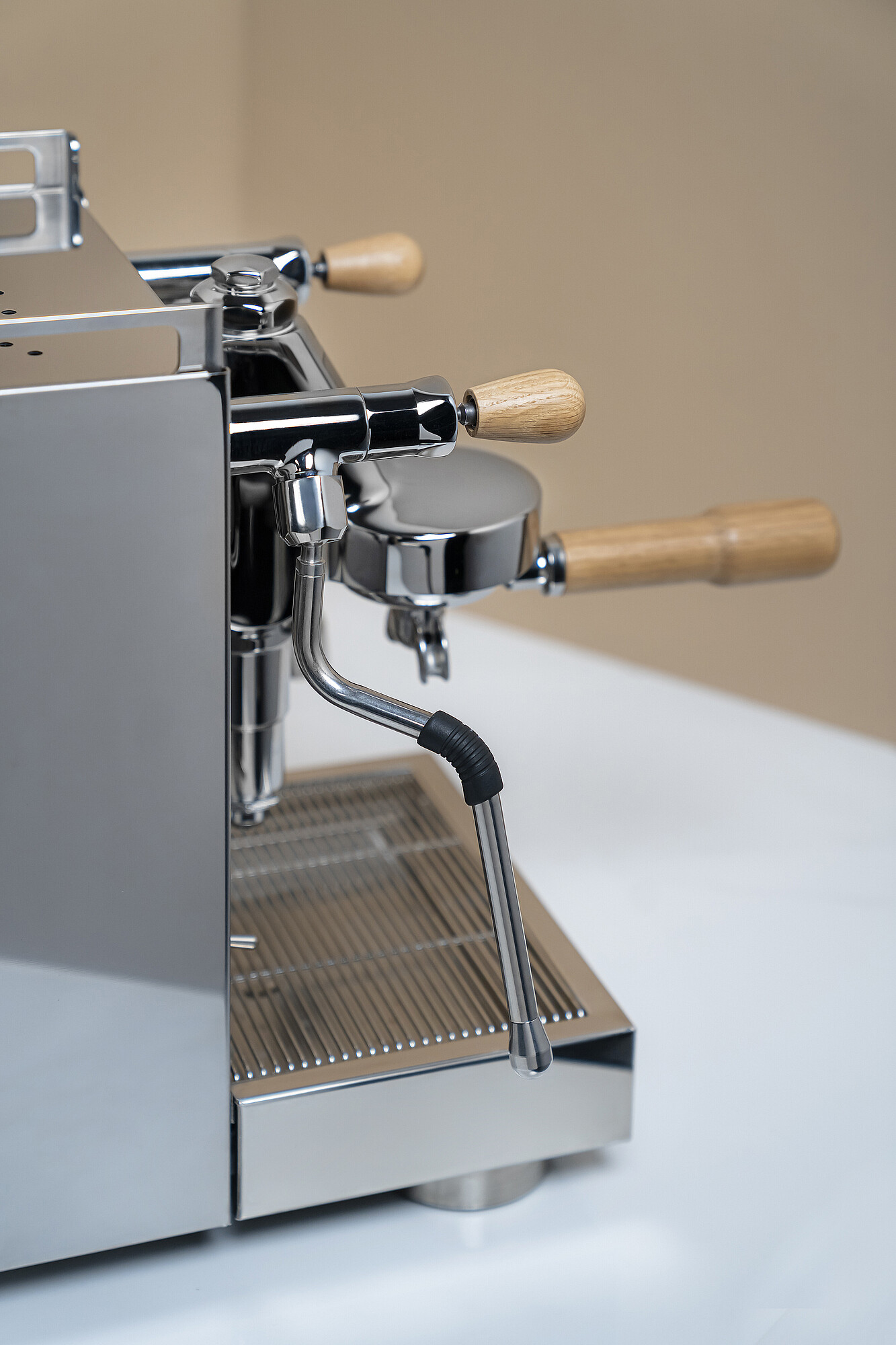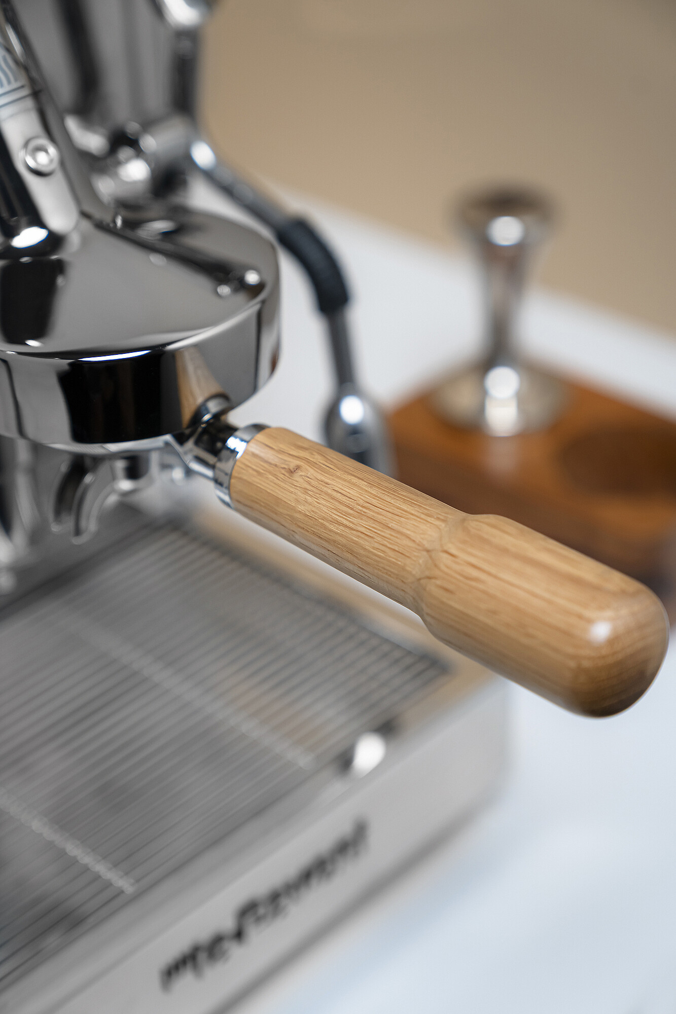 • Portafilter: 58.0 mm diameter featuring a wooden handle