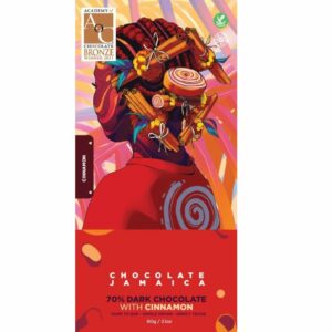 Bronze at the Academy of Chocolate. “We likkle but we tallawah” (we may be small in size but we are bold in character) says a Jamaican proverb. And that is in this bar with Jamaican cinnamon.