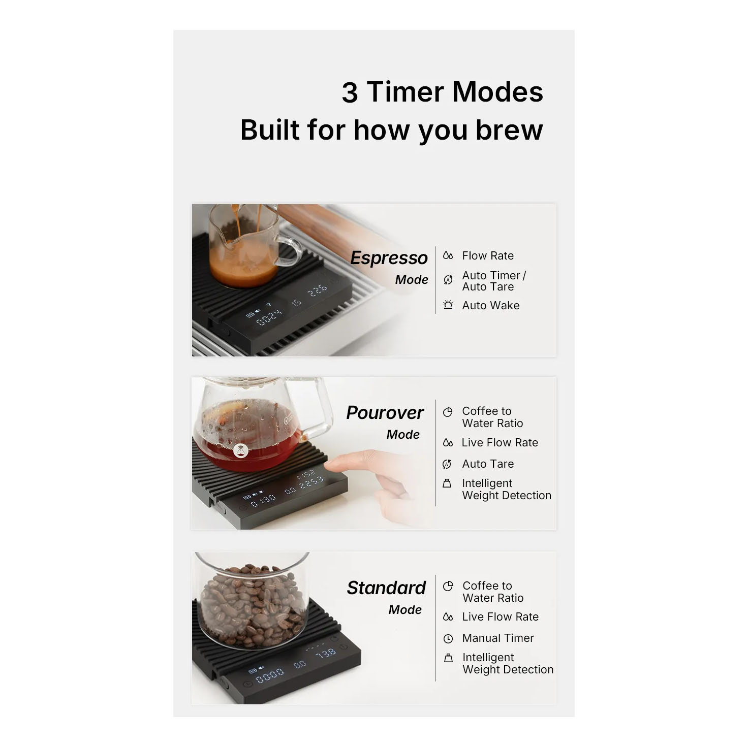 | Timer | Up to 59:59, auto-start in Pour-Over and Espresso modes |