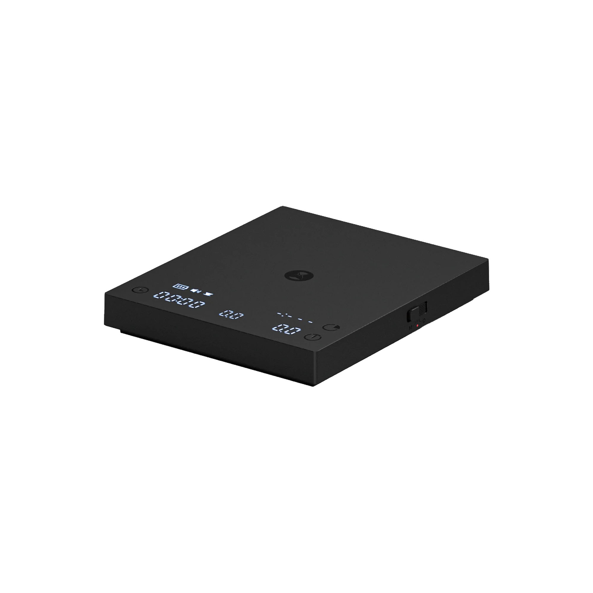 A compact coffee scale with 0.1 g resolution, a real-time flow rate display, and an automatic coffee-to-water ratio calculator. Built for pour-over and espresso, with three dedicated brewing modes and a minimum readable weight of 0.2 g. At 20 mm thick and 300 g, it fits on most espresso drip trays.