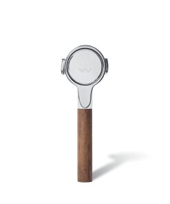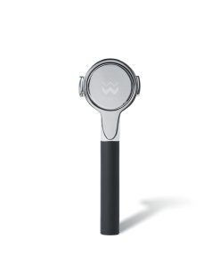 The Weber Workshops Buck is a naked portafilter made from a block of forged, machined, and polished 304 stainless steel. It is designed to sit flat on a countertop and is optimized for Unibasket sizes but compatible with all standard 58mm baskets.